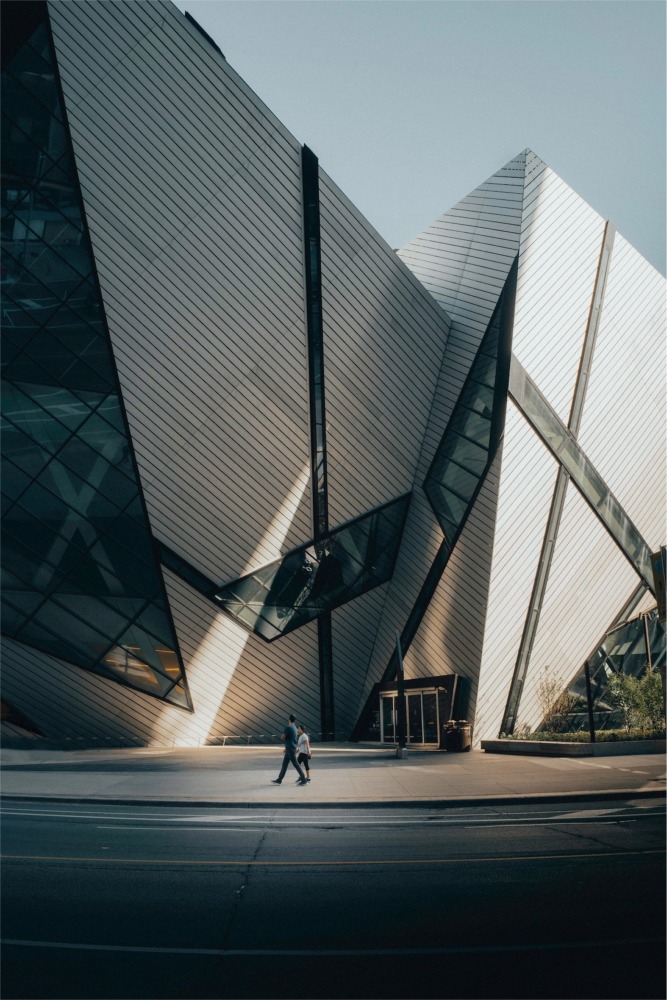 A photograph of the Royal Ontario Museum, Toronto, Canada featuring the Michael Lee-Chin Crystal.