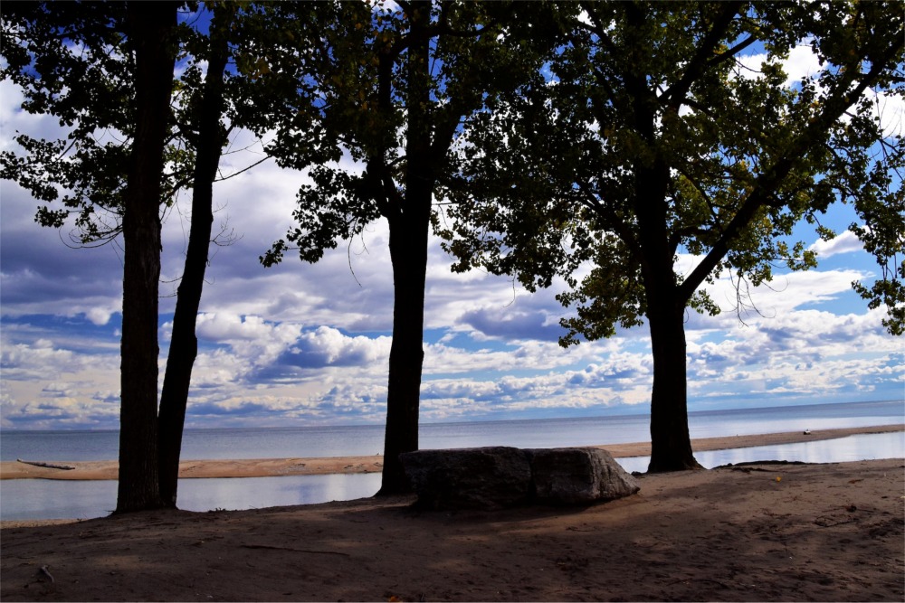 A lovely Photograph of three trees on the beach of Lake Ontario in the Rouge National Urban Park, Toronto, Ontario, Canada.